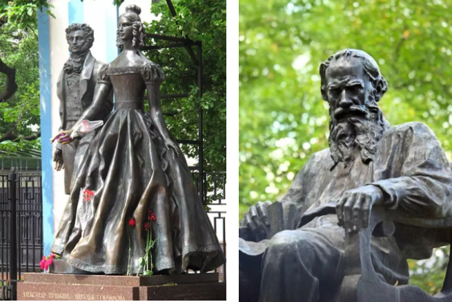 莫斯科街頭 普希金和托爾斯泰雕塑
