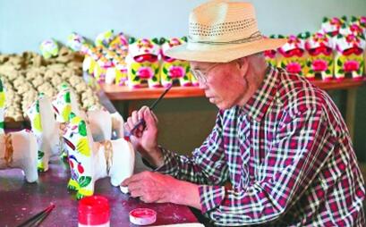 近年來,山東青島萊西市挖掘村莊歷史文化資源,以鄉(xiāng)村振興為核心,積極融入“樂在萊西”旅游品牌培育。產(chǎn)芝村泥塑柳編館內(nèi)的泥老虎是用木??闹?,并有一個“哨”。推拉擠壓時,哨音就會在虎頭的空腔內(nèi)產(chǎn)生共鳴,虎嘴會發(fā)出“咕咕”的叫聲。左圖為手工藝人在制作泥老虎。