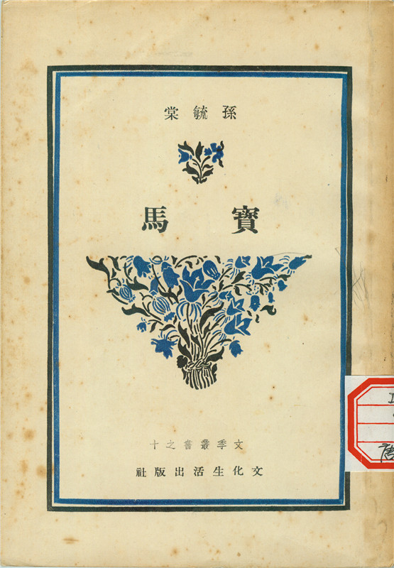 《寶馬》詩集。孫毓棠著。民國二十八年(1939)九月初版。上海文化生活出版社發(fā)行?!段募緟矔分?。內(nèi)收上卷1篇、下卷36篇,共37篇。