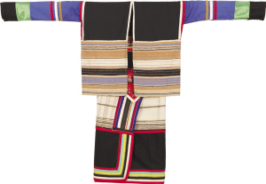 北京服裝學(xué)院民族服飾博物館藏基諾族砍刀布鑲彩條女套裝。