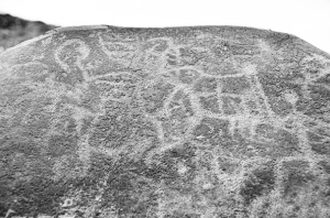 5月初,白龍村群眾在該村科哇、布日兩地發(fā)現(xiàn)大批刻有古樸圖畫的石板,第一時(shí)間將線索上報(bào)。稱多縣文聯(lián)工作人員趕到現(xiàn)場(chǎng)后,初步斷定這些石板為古巖畫,共609幅,分屬于143個(gè)巖畫群,畫面內(nèi)容涵蓋動(dòng)物、人物、自然、星空等。