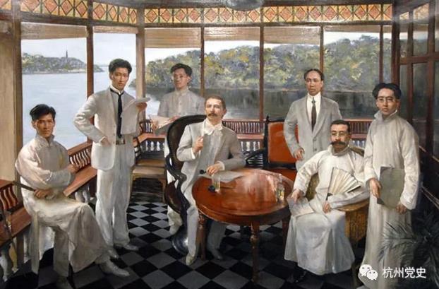 這種悶熱的氣氛影響到了在湖邊的一座小洋樓里開會的七個人。這座視野十分開闊,在這個夏日能清楚看到保俶塔的洋樓的二樓,這七人正在激烈地爭論著。他們討論的,是一個政黨今后的根本發(fā)展問題。這七人的名字,無論在當(dāng)時還是現(xiàn)在,都如雷貫耳:陳獨秀、李大釗、蔡和森、張國燾、高君宇、馬林、張?zhí)住?/span>