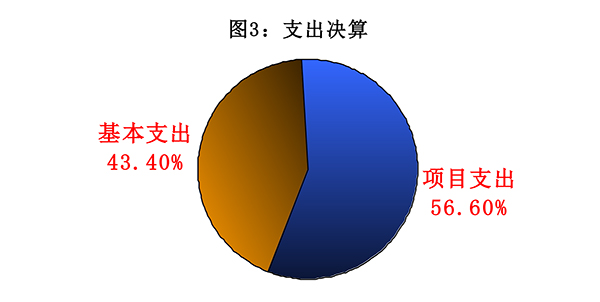 本年支出合計(jì)29073.29萬元,其中:基本支出12618.03萬元,占 43.40%;項(xiàng)目支出16455.26萬元,占 56.60%。