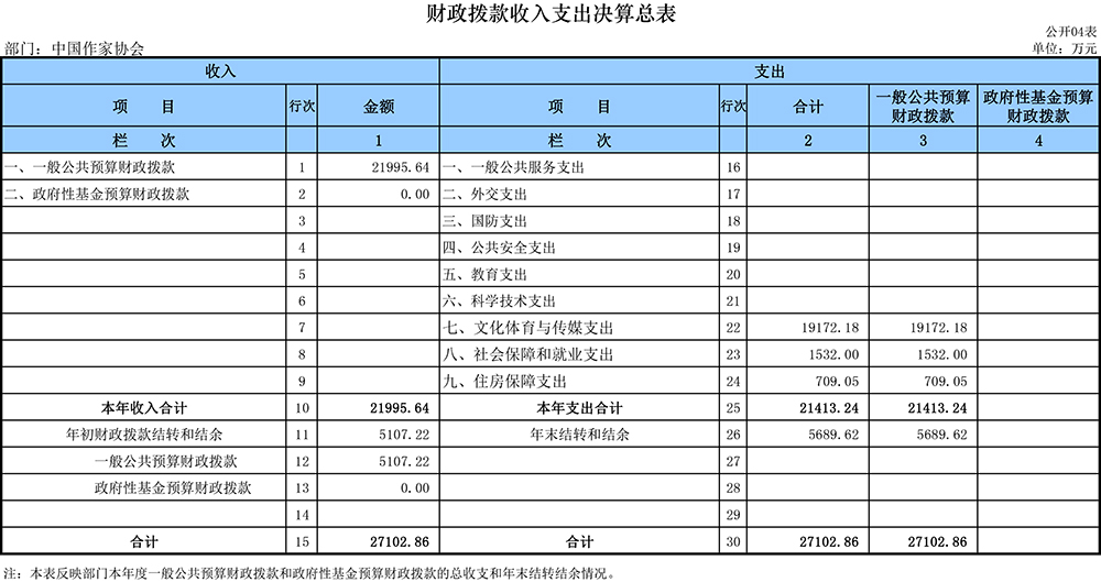 2017年中國作協(xié)部門決算報(bào)表如下: