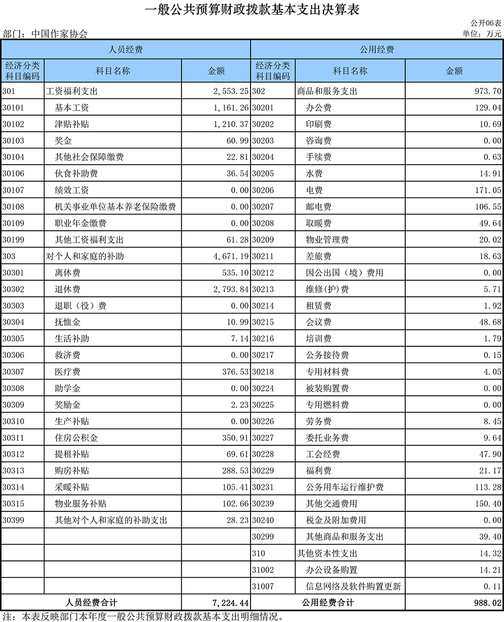 六、關(guān)于中國作協(xié)2017年度一般公共預(yù)算財(cái)政撥款基本支出決算情況說明