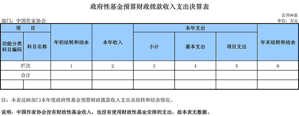 八、關(guān)于中國作協(xié)2017年度政府性基金預(yù)算財(cái)政撥款收支情況