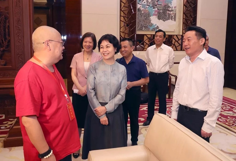 鐵凝主席與采風(fēng)團(tuán)成員遼寧省作協(xié)黨組書記、主席騰貞甫,廣西自治區(qū)作協(xié)副主席樊一平等交流