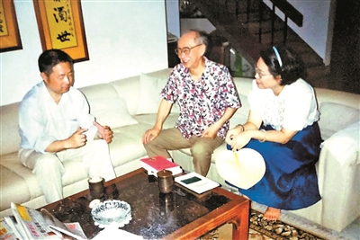 1996年,在臺灣著名劇作家姚一葦先生家中作客。中間為姚一葦,右一是姚先生夫人李應(yīng)強(qiáng)