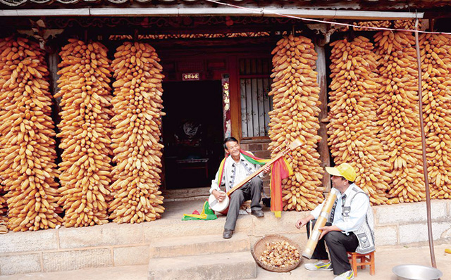 如今的阿細(xì)人,特別喜歡唱酒歌。常常是不論吃早飯還是吃晚飯,只要男子在一起喝酒,酒歌就脫口而出,吸引女子前來參唱,拍掌助興。意猶未盡,干脆吹起竹笛,彈起三弦,拉起二胡進(jìn)行伴奏。于是,歌聲、笛聲、弦聲、掌聲……匯合成響徹云霄的交響曲。