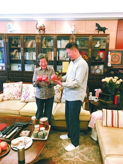 《老舍點戲》開幕式后,徐國衛(wèi)拜訪了舒濟先生。把老舍濟南舊居里結的石榴奉上時,舒先生特別高興。
