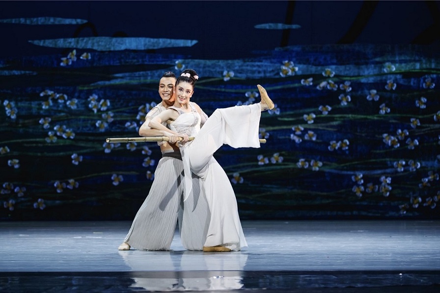 在舞劇《劉三姐》中,能否用舞蹈來傳達(dá)山歌中的情感和意境,把劉三姐與阿牛哥的這段愛情令人信服地展現(xiàn)在舞臺(tái)上,關(guān)系到這部作品的成敗。作為飾演劉三姐和阿牛哥的兩位主演,王倩與劉迦身上承擔(dān)了創(chuàng)作團(tuán)隊(duì)和觀眾的雙重期待