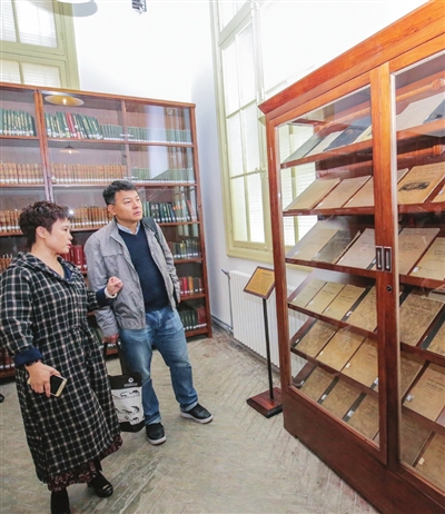 原北疆博物院圖書室收藏有圖書14000余冊(cè)、地圖復(fù)制品900余張以及各類印版等文獻(xiàn)資料。此次展出的圖書共2000余冊(cè),其中有法國(guó)動(dòng)物學(xué)家、古生物學(xué)家喬治·居維葉的代表作《四足動(dòng)物化石研究》等。這些圖書資料極其珍貴,兼具學(xué)術(shù)研究與文獻(xiàn)收藏價(jià)值。