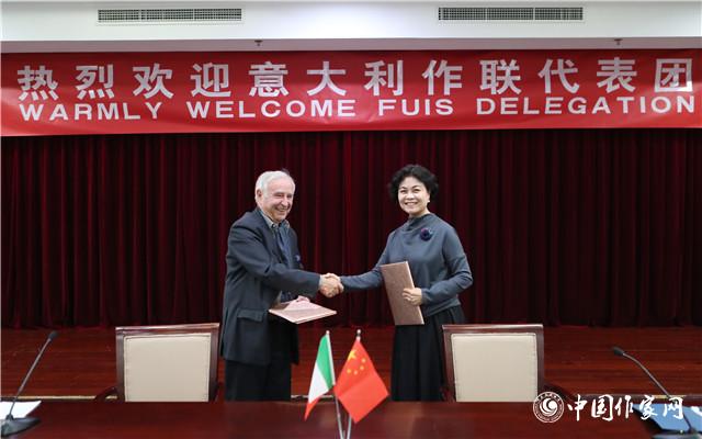 鐵凝與納塔萊?羅西共同簽署 《中國作家協(xié)會與意大利作家聯(lián)合會友好交流與合作諒解備忘錄》