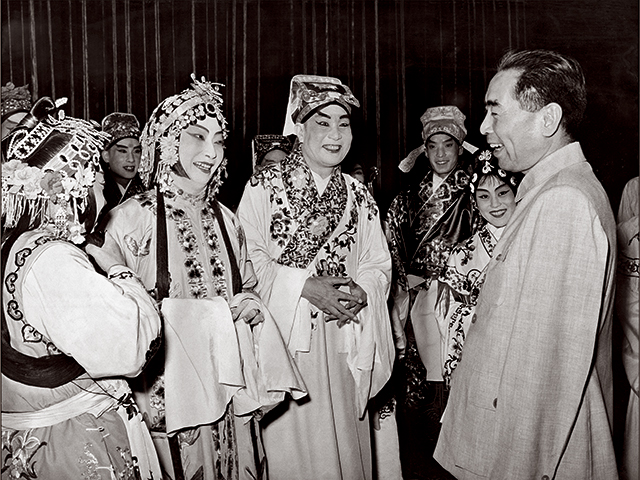 北方昆曲劇院成立紀(jì)念演出后周恩來總理接見演員 前左起:韓世昌、梅蘭芳、白云生