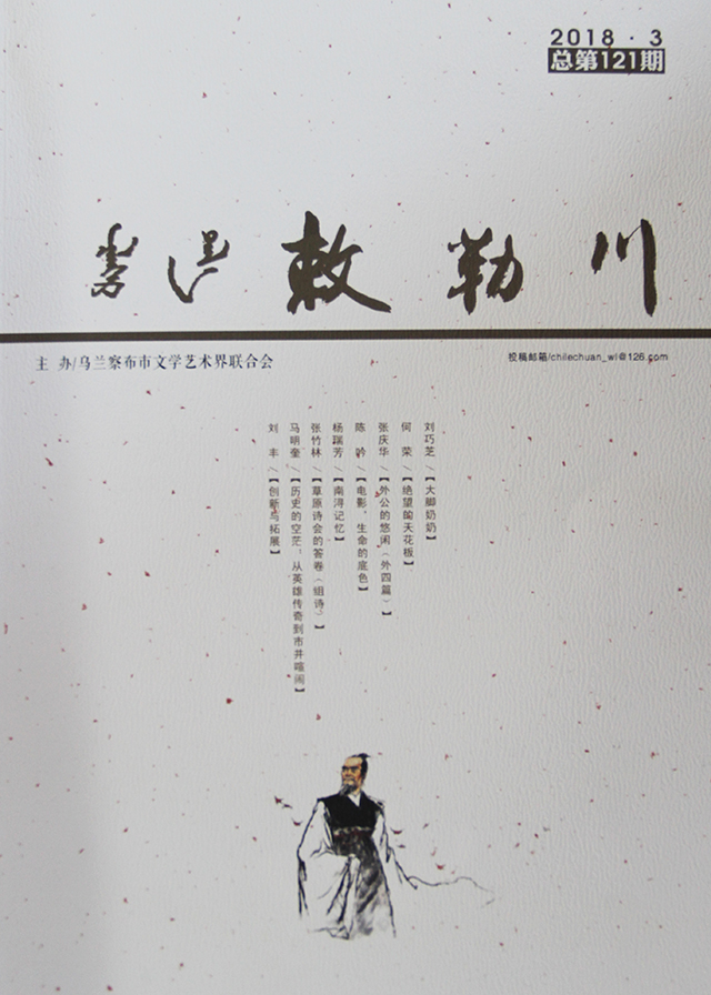《敕勒川》由內蒙古自治區(qū)烏蘭察布市委宣傳部主管,烏蘭察布市文聯(lián)主辦,創(chuàng)刊于1981年,后???,2001年7月復刊,屬內部交流刊物。有小說(中篇、短篇)、詩歌、散文、文學評論。2015年1月改版,為16開、80頁,內文設計、版式設計、裝幀設計全面提升,欄目在原有基礎上新增“名家走筆”專欄,目前已出刊 125期。2017年成功加入全國期刊聯(lián)盟,為烏蘭察布市文學藝術事業(yè)的繁榮做出貢獻。
