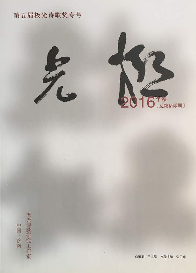 《極光》詩刊于2001年在濟(jì)南創(chuàng)刊,屬于民刊,由同仁自籌資金,不定期印行,內(nèi)部交流贈閱。先后有近兩百位全國一線詩人在刊物上發(fā)表作品,成為山東唯一在全國深具影響力的民間詩刊。2008年起設(shè)立“極光詩歌獎”,每次評選一名年度詩人獎,一名年度新銳獎。獎品是當(dāng)代著名畫家作品一幅,以藝術(shù)褒獎藝術(shù),堅(jiān)持純詩立場和民間姿態(tài),迄今已經(jīng)舉辦了五屆詩歌獎,先后有長征、姚風(fēng)、安琪、盛興、勿等詩人獲獎,在全國引起強(qiáng)烈關(guān)注和贊譽(yù)。