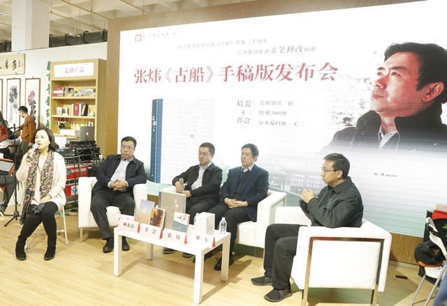 在北京圖書訂貨會(huì)期間,《古船》手稿本引起了讀者的關(guān)注,“沒想到,這里最開始是這么寫的”“一片貼一片,真是修改得認(rèn)真啊”。11日下午,作家張煒、評(píng)論家白燁、中國(guó)現(xiàn)代文學(xué)館常務(wù)副館長(zhǎng)劉方、中國(guó)出版集團(tuán)副總裁李巖、人民文學(xué)出版社社長(zhǎng)臧永清、人民文學(xué)出版社副總編輯應(yīng)紅一同走進(jìn)中版書房,和大家回望《古船》的寫作,以及那個(gè)日漸遙遠(yuǎn)的手寫年代。