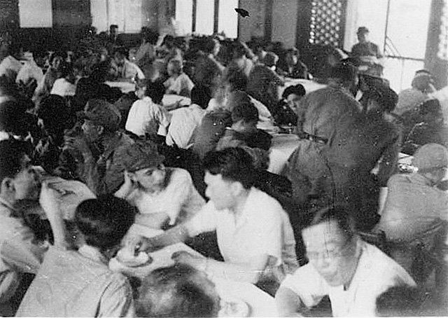 1949年,在第一次文代會上,軍隊代表團和華東代表團座談,中間戴帽者為胡可,右為陳白塵,對面為岳野。