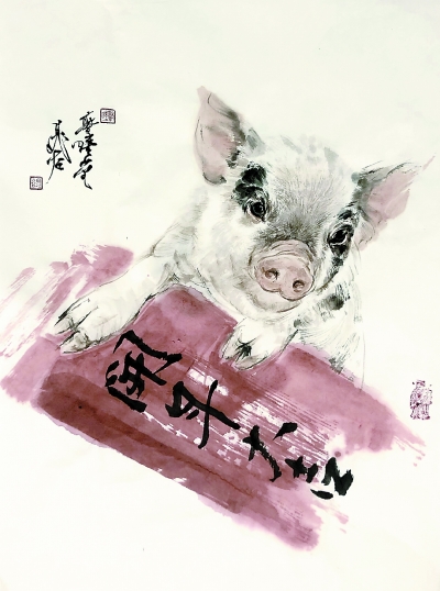 以寫(xiě)意見(jiàn)長(zhǎng)的中國(guó)畫(huà)需要經(jīng)過(guò)長(zhǎng)期觀察摸索,提煉出一套筆墨表達(dá)的程式,方能對(duì)“十二生肖”得心應(yīng)手。如果說(shuō)其他生肖還總有為數(shù)不少的畫(huà)家在研磨,那么,遍觀畫(huà)史,惟獨(dú)以豬入畫(huà)者甚少,甚至有豬不入畫(huà)之俗。原因無(wú)外乎有二。其一,豬的形態(tài)多給人以臟懶之感,在題材上就輸了半截;再者,贈(zèng)人以畫(huà),若畫(huà)上一頭肥豬,豈非有不敬之嫌?