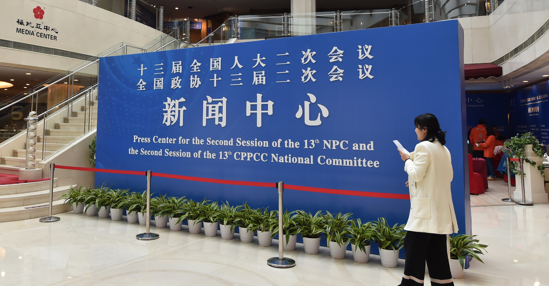 隨著全國(guó)兩會(huì)日益臨近,2月27日,位于梅地亞中心的全國(guó)兩會(huì)新聞中心正式開(kāi)展工作。在兩會(huì)期間,新聞中心將舉行多場(chǎng)記者會(huì),并將為記者提供采訪(fǎng)工作相關(guān)服務(wù)。據(jù)介紹,今年兩會(huì)新聞中心首次實(shí)現(xiàn)5G信號(hào)全覆蓋。據(jù)悉,十三屆全國(guó)人大二次會(huì)議和全國(guó)政協(xié)十三屆二次會(huì)議將分別于3月5日和3月3日在北京開(kāi)幕。