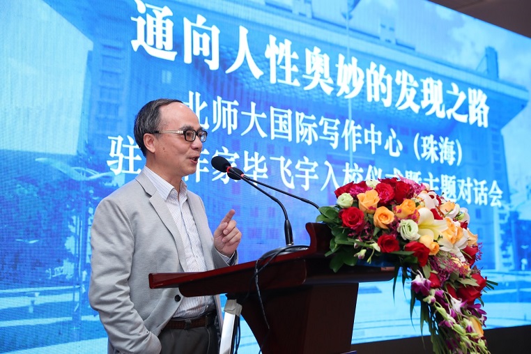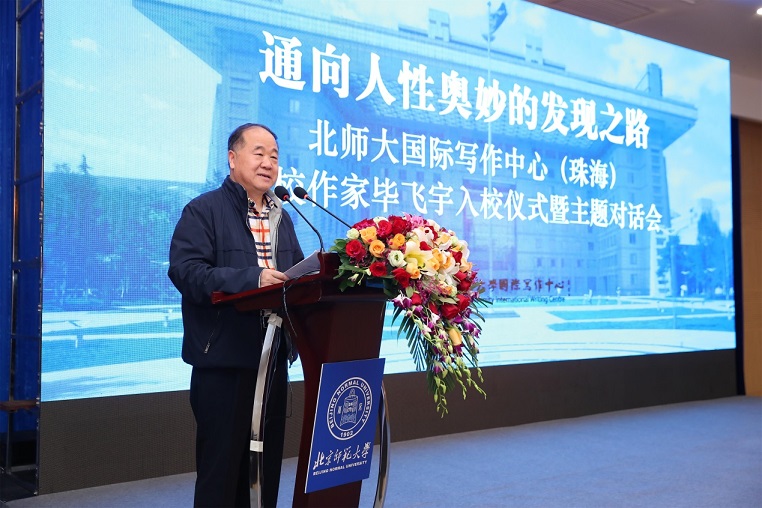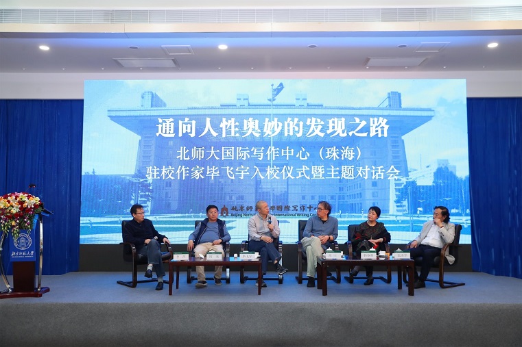 4月14日上午,“通向人性奧妙的發(fā)現(xiàn)之路:北師大國際寫作中心(珠海)駐校作家畢飛宇入校儀式暨主題對話會”在北師大珠海校區(qū)舉行。自2013年北師大寫作中心引入駐校作家制度以來,先后邀請了賈平凹、余華、嚴(yán)歌苓、歐陽江河、蘇童、西川、遲子建、翟永明、格非、韓少功等10位駐校作家,推動了文學(xué)教育事業(yè)的蓬勃開展。今年,知名作家畢飛宇也加入到駐校作家的行列,在入校儀式上,北師大國際寫作中心主任莫言、珠海分校副校長傅愛蘭為畢飛宇頒發(fā)聘書,儀式由北京師范大學(xué)國際寫作中心執(zhí)行主任張清華主持。