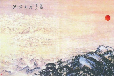 1959年傅抱石與關(guān)山月聯(lián)袂為人民大會堂創(chuàng)作巨幅國畫,精心描繪《沁園春·雪》所表現(xiàn)的壯美河山,毛澤東親自為該畫題款“江山如此多嬌”