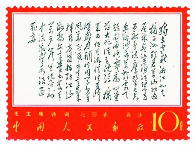 20世紀(jì)60年代,郵電部發(fā)行的《毛主席詩詞》郵票,選用了毛澤東詩詞手跡