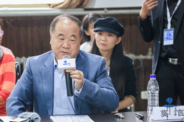 莫言在首屆呂梁文學(xué)季莫言研討會(huì)現(xiàn)場(chǎng)