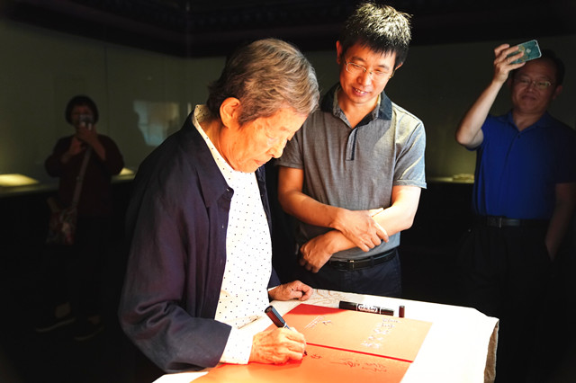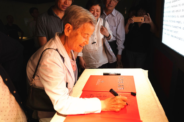 為紀(jì)念著名作家老舍誕辰120周年,6月1日,老舍代表作《四世同堂》手稿特展在中國(guó)現(xiàn)代文學(xué)館開(kāi)展。中國(guó)現(xiàn)代文學(xué)館副館長(zhǎng)梁飛,老舍先生長(zhǎng)女舒濟(jì)、老舍先生長(zhǎng)子舒乙的夫人于濱,以及各界觀眾百余人參觀首展。