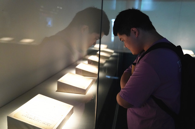 在展覽首日,觀眾不僅有在京讀者與文史愛(ài)好者,同時(shí)還有來(lái)自外地的忠實(shí)讀者。安徽宿州學(xué)院漢語(yǔ)言文學(xué)專業(yè)的師生數(shù)十人專程來(lái)京觀展,舒濟(jì)鼓勵(lì)青年學(xué)生們多讀書、讀好書,真正把老舍先生的作品傳承下去?!爸袊?guó)現(xiàn)代文學(xué)館為大家展出了老舍先生的手稿,這種實(shí)物觀展的機(jī)會(huì)難得,希望同學(xué)們能在此有所收獲?!?/p>