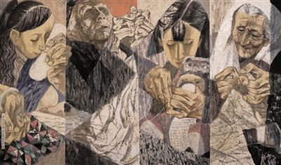 老一輩女藝術(shù)家中,周思聰、王迎春等人的成就尤為引人矚目。她們具有女性藝術(shù)家少有的大視野和大氣魄,其作品一直關(guān)注人類社會面臨的共同問題,如戰(zhàn)爭、建設(shè)、家園、土地等等。她們在處理這些題材時駕輕就熟,從選題到立意,從畫面結(jié)構(gòu)到具體人物塑造,從場景控制到細(xì)節(jié)表現(xiàn),頗具開創(chuàng)性,將高超的現(xiàn)實觀察力與藝術(shù)表現(xiàn)天賦完美融合。