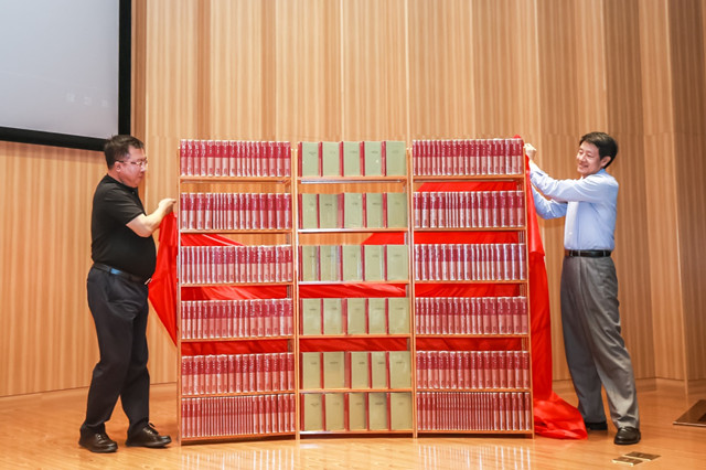 人民文學出版社社長臧永清(左)與中國社會科學院外國文學研究所所長陳眾議共同為新版“外國文學名著叢書”第一輯揭幕(圖片由人民文學出版社提供)