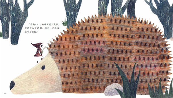 澎湃新聞:你的圖畫(huà)書(shū)創(chuàng)作可以說(shuō)起點(diǎn)很高,《走出森林的小紅帽》拿了很多獎(jiǎng),最初怎么會(huì)想到要改編這個(gè)經(jīng)典童話故事的呢?我們知道,這些年對(duì)于這些經(jīng)典童話在各種藝術(shù)形式中的顛覆性改編都很多,其中有沒(méi)有對(duì)你產(chǎn)生過(guò)影響或啟發(fā)的?為什么會(huì)想到把小紅帽變成盲人呢?