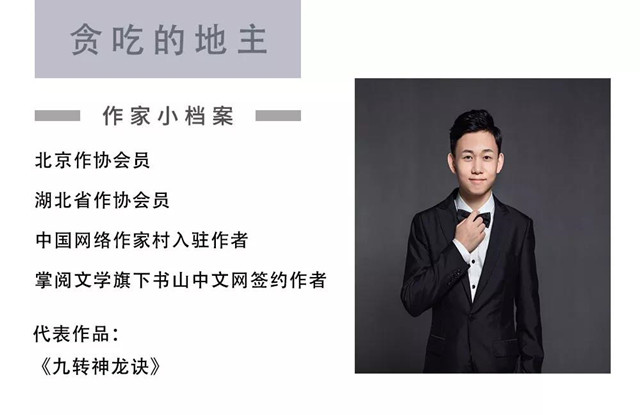 2017年初,他的首部玄幻作品——《九轉(zhuǎn)神龍訣》引發(fā)追捧,貪吃的地主火了。