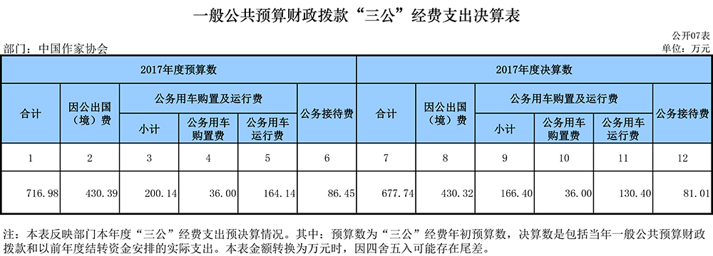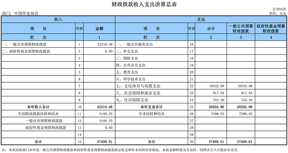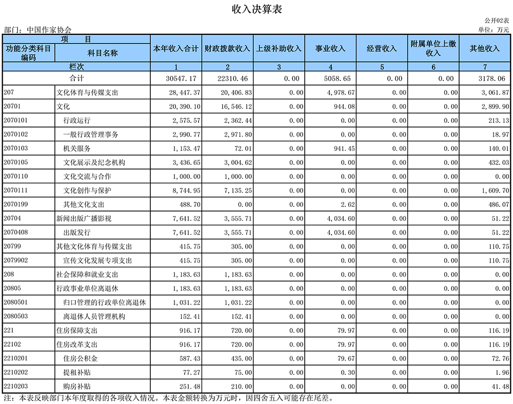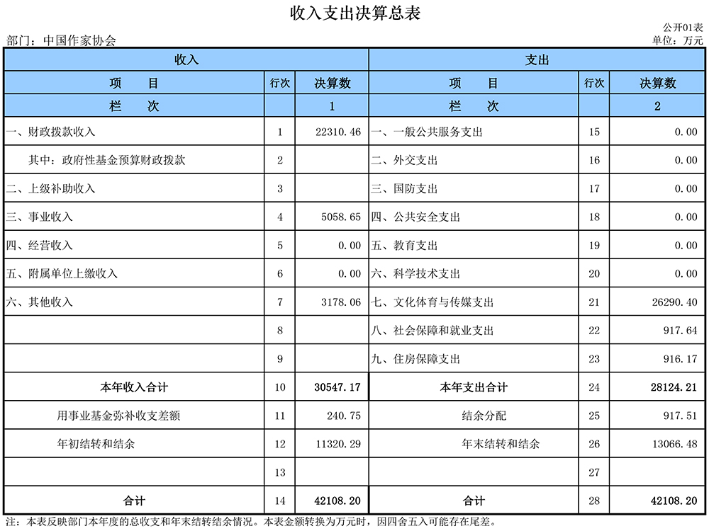 中國作家協(xié)會(huì)2018年部門決算包括中國作協(xié)本級(jí)決算及所屬11個(gè)事業(yè)單位決算,同比不變。