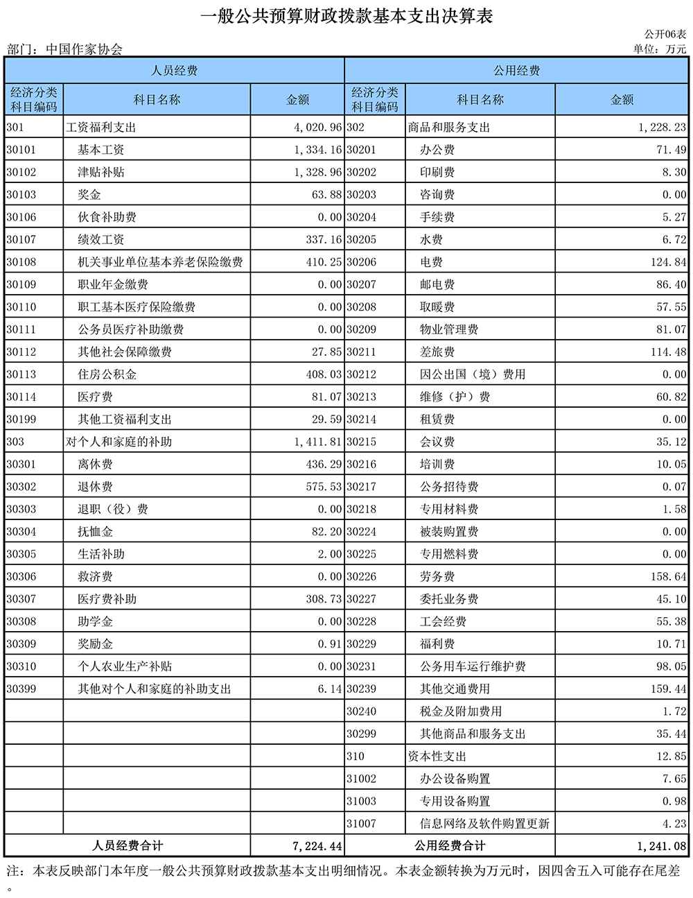 七、文化體育與傳媒(類)文化(款)行政運(yùn)行(項(xiàng)):指中國作協(xié)本級(jí)行政人員工資及機(jī)構(gòu)正常運(yùn)轉(zhuǎn)、履行職責(zé)所需的基本支出。