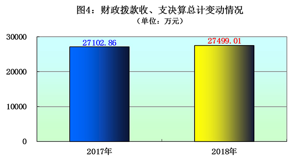 2018年度財(cái)政撥款收、支總計(jì)27499.01萬元。與2017年相比,財(cái)政撥款收、支總計(jì)各增加396.15萬元,增幅1.46%。