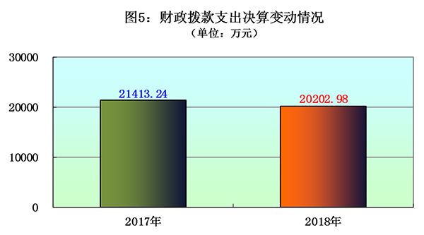 2018年度財(cái)政撥款支出20202.98萬元, 占本年支出合計(jì)的73.47%。與2017年相比,財(cái)政撥款支出減少1210.26萬元,下降5.65%。