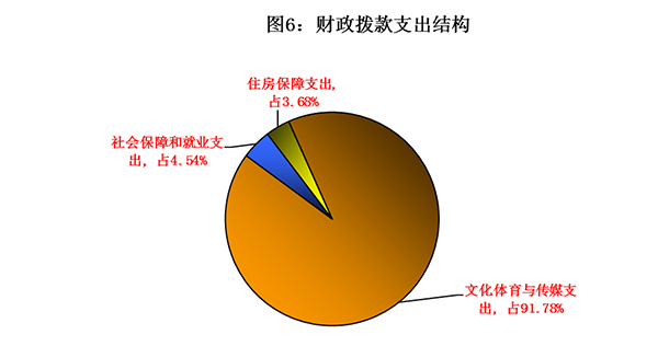2018年度財(cái)政撥款支出20202.98萬元,主要用于以下方面:文化體育與傳媒(類)支出18542.08萬元,占91.78%;社會(huì)保障和就業(yè)(類)支出917.64萬元,占4.54%;住房保障(類)支出743.26萬元,占3.68%。