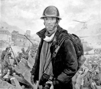 我這次參展作品的最后一幅是《北青報(bào)記者在“前線”》。我畫(huà)了這么多歷史上的老報(bào)人、名記者,也應(yīng)該畫(huà)新時(shí)期的年輕新聞人。所以畫(huà)了汶川大地震,北青報(bào)記者崔峻在震中映秀鎮(zhèn)的工作狀態(tài)。以“前線”命名還是同事楊信的提議,新聞現(xiàn)場(chǎng)之于記者,就是戰(zhàn)士的前線。他還和我打镲,說(shuō)老焦畫(huà)了這么多新聞工作者,就最后一個(gè)還活著。