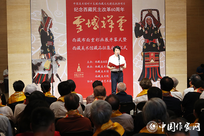 8月15日,由西藏自治區(qū)文聯(lián)主辦,西藏美術(shù)家協(xié)會(huì)、西藏美術(shù)館籌建辦、西藏美術(shù)院承辦,李可染藝術(shù)基金會(huì)協(xié)辦的中國(guó)美術(shù)館對(duì)口支援西藏文化建設(shè)扶持項(xiàng)目:紀(jì)念西藏民主改革60周年“雪域祥云——西藏布面重彩畫(huà)展”開(kāi)幕式暨西藏美術(shù)館藏品征集啟動(dòng)儀式在中國(guó)美術(shù)館舉行。中國(guó)文聯(lián)副主席李前光、馮遠(yuǎn),西藏自治區(qū)政協(xié)副主席、西藏文聯(lián)主席扎西達(dá)娃,中國(guó)美術(shù)家協(xié)會(huì)名譽(yù)主席靳尚誼等80余人出席活動(dòng)并參觀展覽。