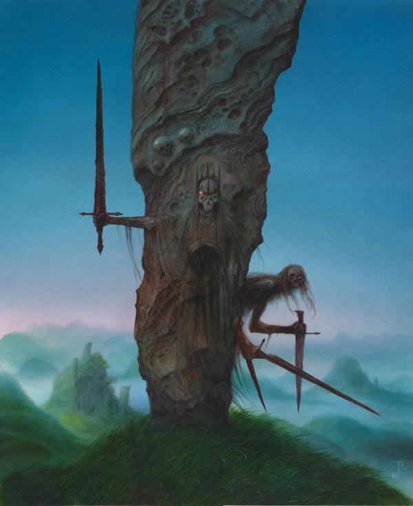 我很喜歡奇幻這個(gè)主題,能從中感受到快樂。通過奇幻這個(gè)介質(zhì),我能表達(dá)出我所想表達(dá)的東西。這可能看上去很奇怪,一個(gè)現(xiàn)實(shí)的人把大部分時(shí)間都用在畫不存在的事物上面,但是我認(rèn)為奇幻其實(shí)是可以不停地向現(xiàn)實(shí)拋出問題的,它可以讓我們對很多事情加深了解,這是讓我非常滿足的一點(diǎn)。好的奇幻作品其實(shí)應(yīng)該像《魔戒》一樣,不僅是一個(gè)奇幻故事,背后有非常多的深邃的問題,有很多值得我們學(xué)習(xí)和欣賞的東西。