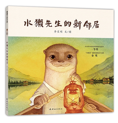 《水獺先生的新鄰居》加上大腰封,水獺先生和鄰居們在一起,真正封面,是孤獨的水獺先生,這個設(shè)計完全符合繪本要傳達的內(nèi)涵。