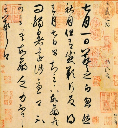 王羲之草書手札《秋月帖》摹本,又稱《七月帖》,麻紙,縱27.7 厘米,橫25.8厘米,現(xiàn)藏臺(tái)北故宮博物院。
