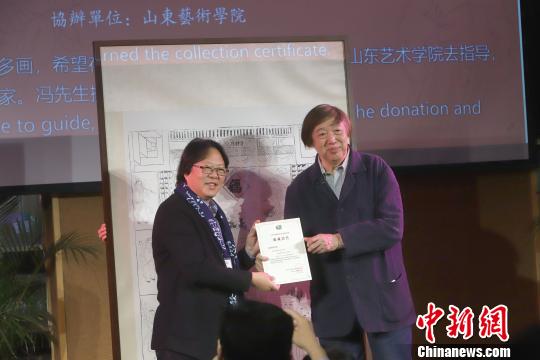 馮驥才向王力克頒發(fā)捐贈(zèng)證書。 張道正 攝