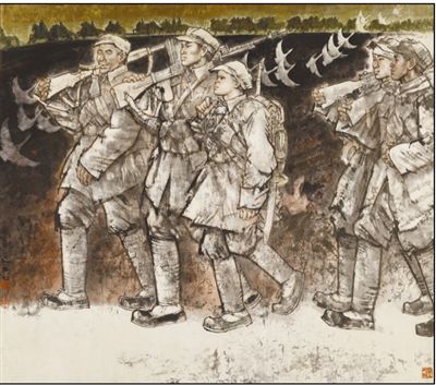 軍旅題材美術作品塑造了各時期保家衛(wèi)國的中國軍人形象,以及我軍現(xiàn)代化建設取得的成就。早在上世紀50年代,有組織的軍事美術創(chuàng)作活動便成為新中國美術發(fā)展的重要組成部分。其中,羅工柳油畫《地道戰(zhàn)》、董希文油畫《紅軍不怕遠征難》、潘鶴雕塑《艱苦歲月》,以及人民英雄紀念碑浮雕,都是這個時期的佳作。此后,中國人民解放軍的群眾性美術創(chuàng)作獲得長足發(fā)展,無論現(xiàn)實題材還是軍事歷史畫都佳作頻出,比如陳逸飛油畫《黃河頌》、張道興中國畫《腳踏著祖國的大地》、邵亞川油畫《巡堤》等。