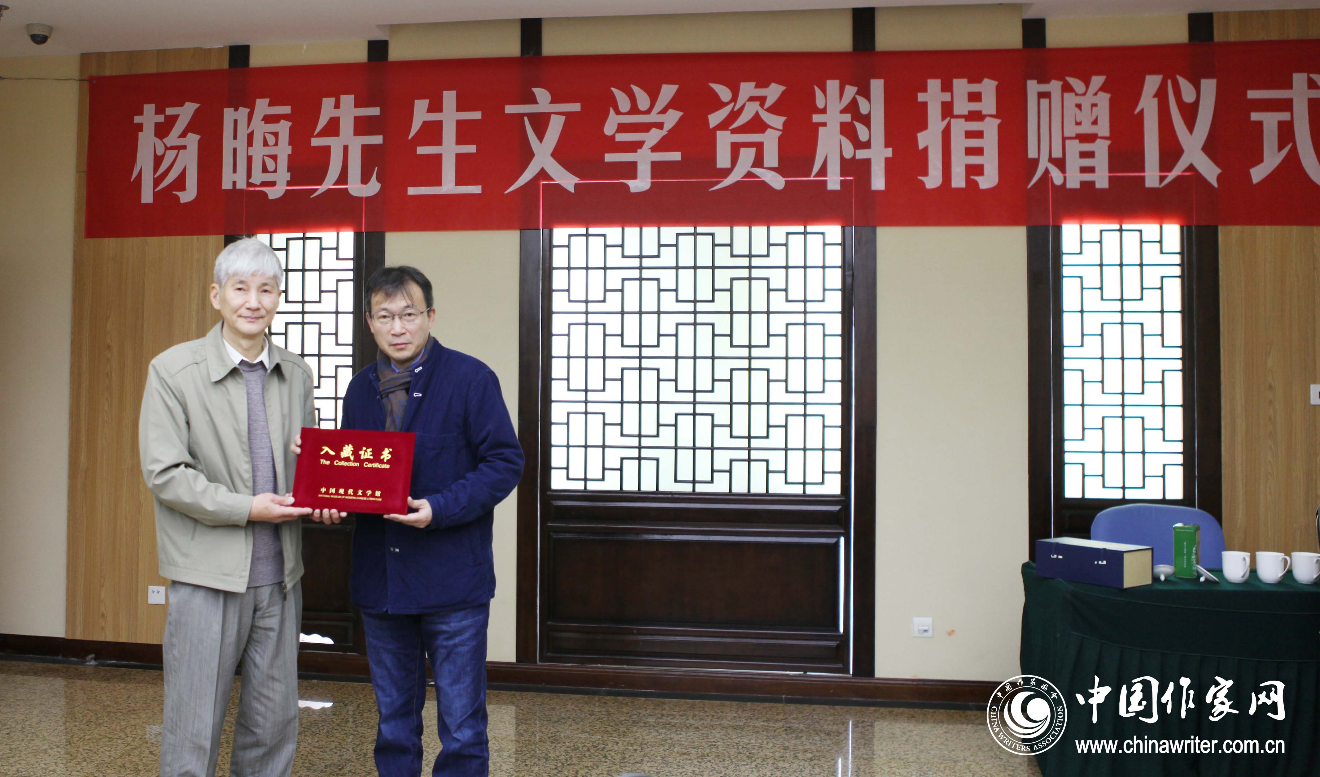 11月12日,“楊晦先生文學(xué)資料捐贈(zèng)儀式”在中國現(xiàn)代文學(xué)館舉行。楊晦女兒楊江城、兒子楊鑄、楊鑄妻子汪又紅代表子女將珍藏的楊晦先生文學(xué)資料764件捐贈(zèng)給中國現(xiàn)代文學(xué)館,其中書信638封、手稿28件、字畫6幅、實(shí)物2件、照片2張、圖書54冊、特藏品34件。中國現(xiàn)代文學(xué)館副館長李榮飛代表文學(xué)館接受捐贈(zèng)并向楊晦子女頒發(fā)入藏證書。