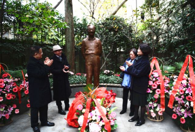 從展覽所在的徐匯藝術(shù)館出來,不遠處武康路113號的巴金故居前院,一座巴金先生的銅像同期揭幕——高2.23米,面向主樓,含笑背手,踱步沉思,如同老人家生前在院子里散步,思考著如何“講真話把心交給讀者”。