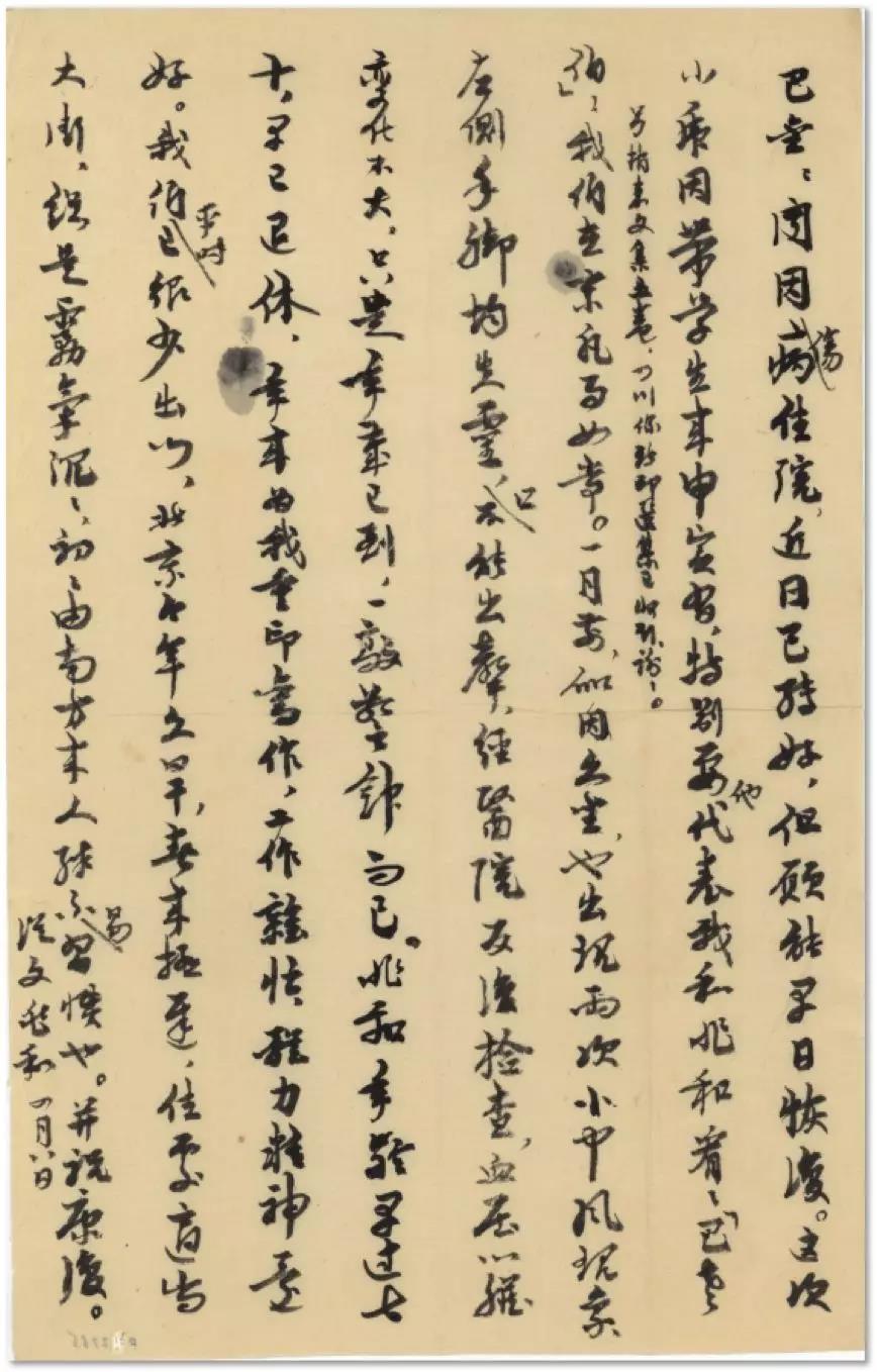 茅盾表達久別的問候:“久不通信,但知近況佳勝,精神煥發(fā),甚佩甚慰?!?/p>