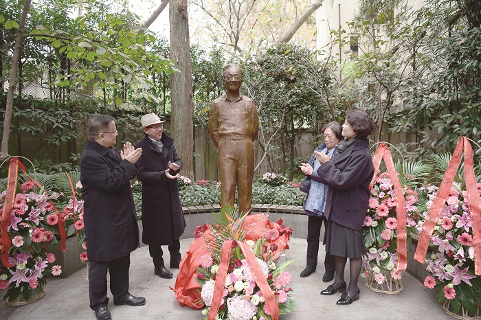 在巴金故居,鐵凝與中國(guó)作協(xié)名譽(yù)副主席金炳華,上海市委宣傳部副部長(zhǎng)兼電影局局長(zhǎng)胡勁軍,巴金先生的女兒李小林,魯迅美術(shù)學(xué)院院長(zhǎng)、巴金銅像作者李象群為巴金銅像揭幕。上海作協(xié)和徐匯區(qū)領(lǐng)導(dǎo)、巴金先生的親屬李小棠、唐寧、祝云立等也參加了揭幕儀式并敬獻(xiàn)花籃。又一次參觀巴金故居,從一件件實(shí)物中回顧巴金的一生,感受從《家》《春》《秋》到《隨想錄》,巴金的作品在現(xiàn)代中國(guó)精神生長(zhǎng)的過(guò)程中發(fā)揮的重要作用,在一代又一代中國(guó)人的成長(zhǎng)道路上留下的深刻印記,鐵凝認(rèn)為,巴老具有面向人生與世界的廣闊視野和強(qiáng)健的行動(dòng)能力。作為一位社會(huì)的和文化的活動(dòng)家,巴金的一生不僅是寫作者,也是行動(dòng)者,他為中國(guó)現(xiàn)代文學(xué)和文化的發(fā)展作出了多方面的、創(chuàng)造性的努力,留下了諸多澤惠后人的業(yè)績(jī)。“巴金先生去世已經(jīng)14年了,但是今天,我們所有的人,都能夠真切地感受到巴老的熱情和性格,和他有過(guò)交往的人,讀過(guò)他的作品的人,都能夠感受到他的光和熱?!痹阼F凝心目中,巴金先生是一位巨人,他的偉大也在于他的質(zhì)樸,他是一個(gè)勞作的人,他以一個(gè)勞動(dòng)者的信念看待自己、對(duì)待世界,誠(chéng)如他自己所言:“我一生始終保持這樣一個(gè)信念,生命的意義在于付出、在于給予,而不是在于接受,也不是在于爭(zhēng)取?!闭且虼耍屠系纳湃绱诉|闊,他的人格、他的信念持久地溫暖著感召著后來(lái)的人們。